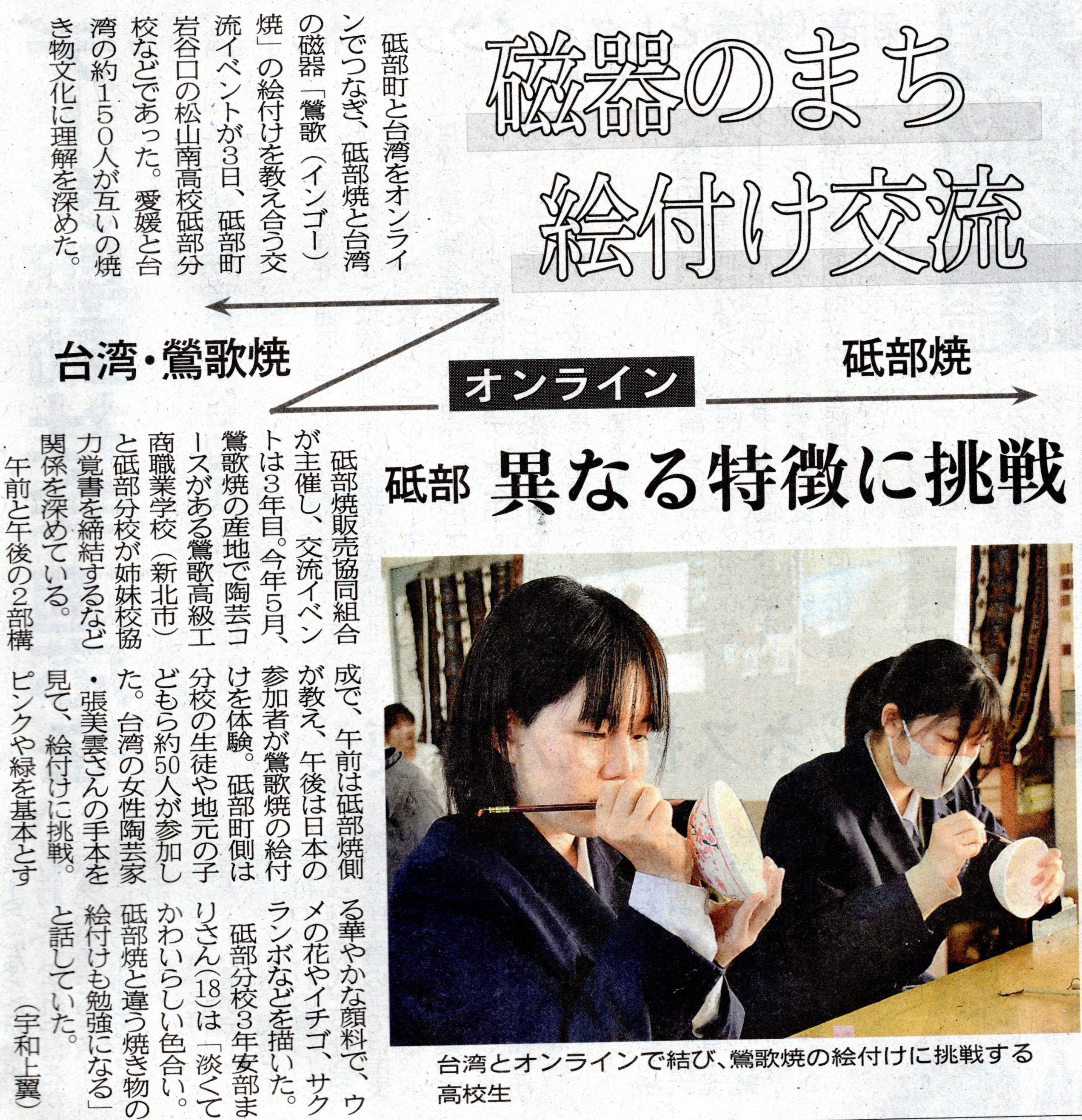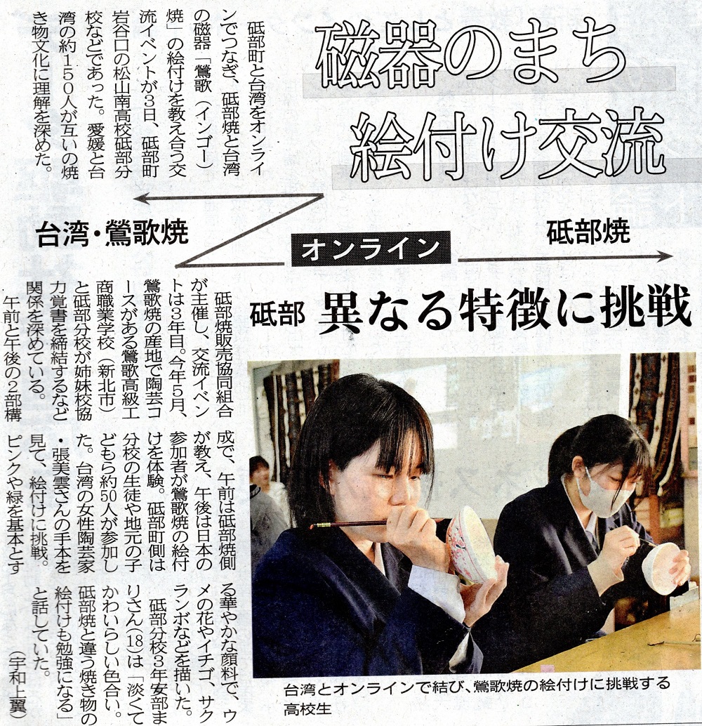 砥部焼と台湾鶯歌焼の絵付け 交流イベント ~愛媛新聞さんに掲載されました~