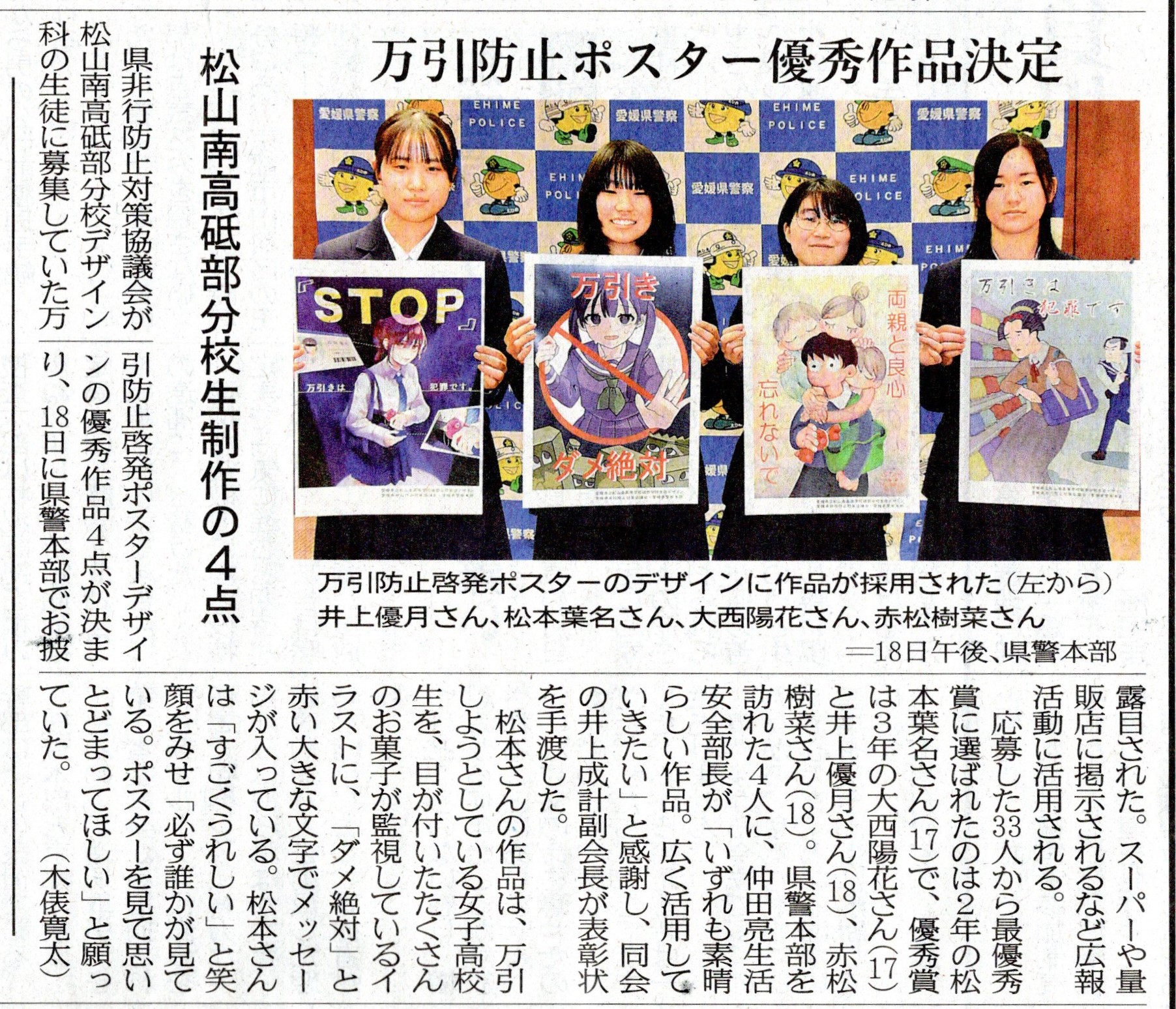夏休みに制作した万引き防止ポスター33点の中から4名の生徒が優秀作品として選ばれました!